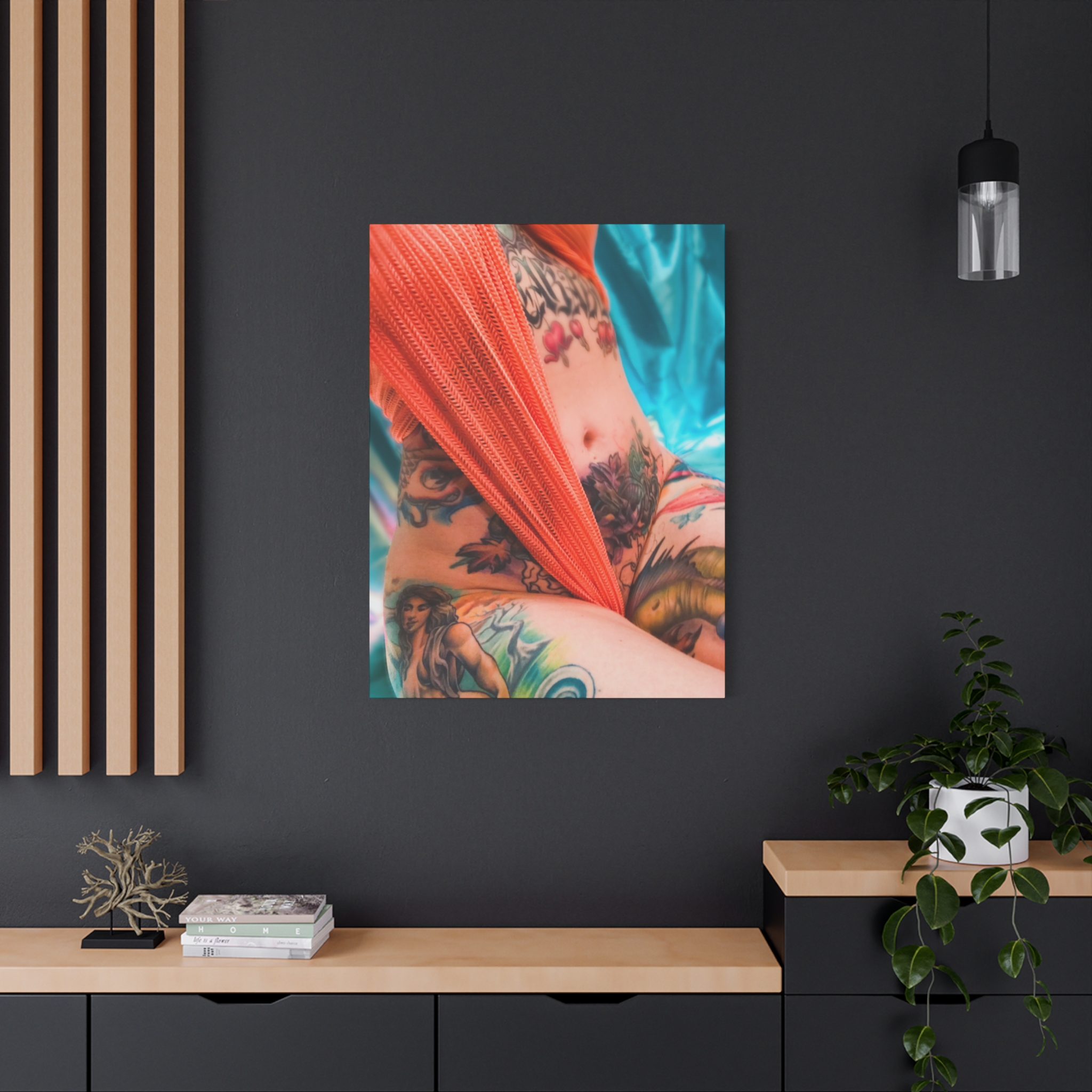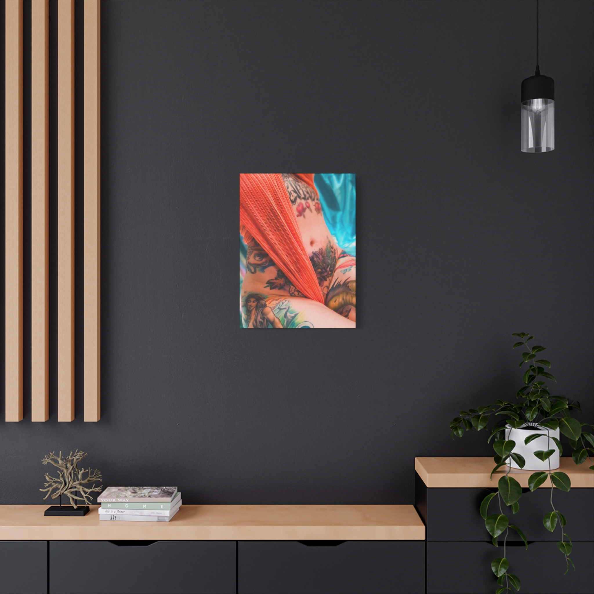 “Fallen Halo” on your choice of canvas size. Each matte canvas comes with back hanging already included for convenient placement. The frame is made with profile radiata pine that is sourced from renewable forests. 1.25″ Over-printed Edge.